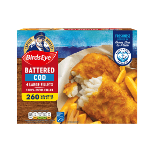 Atlantic Cod is caught with with Trawls, Lines and Hooks, Gill Nets and similar Nets and is available in our Birds Eye fish fingers.